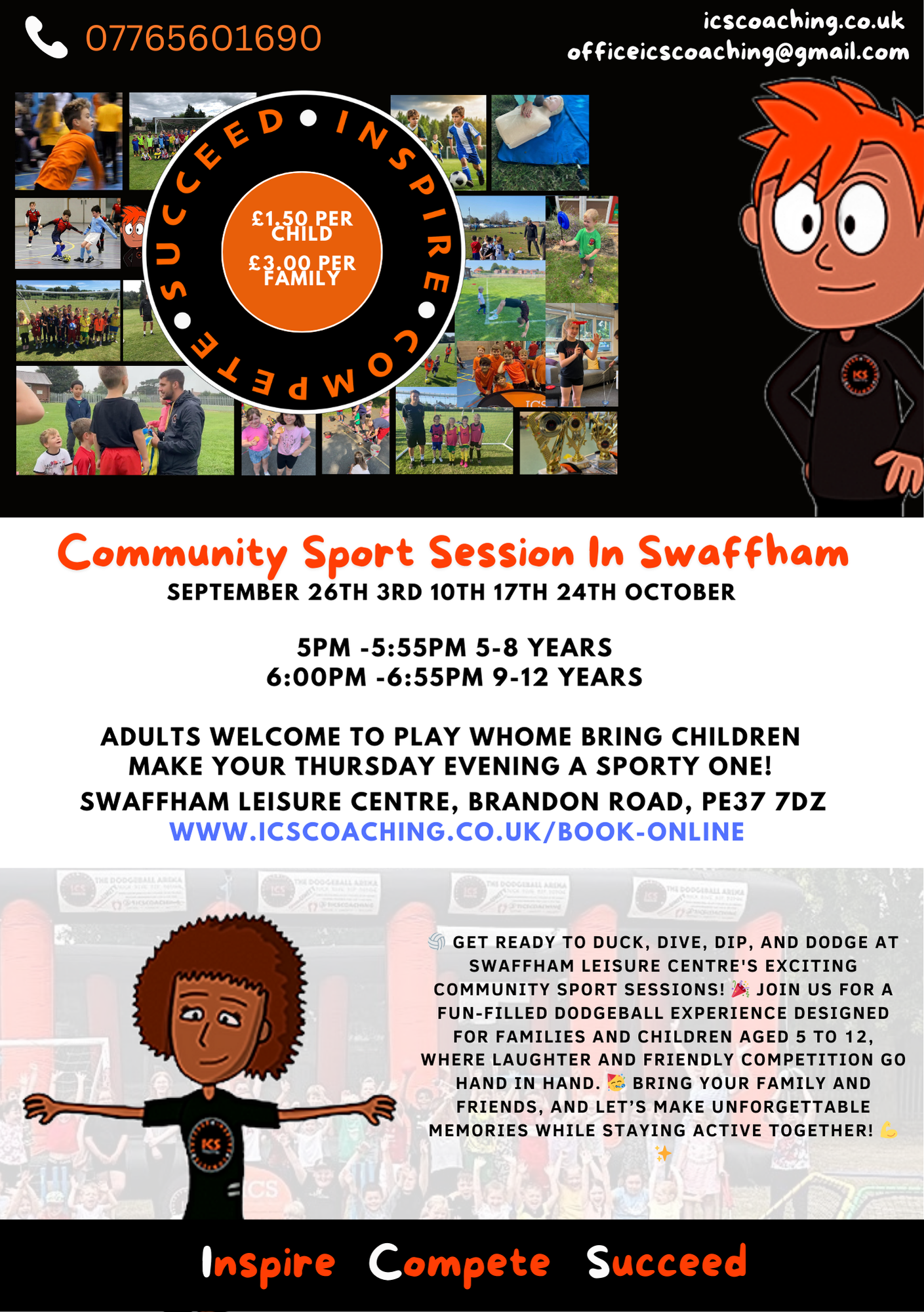 Get ready to duck, dive, dip, and dodge at Swaffham Leisure Centre's exciting Community Sport Sessions! 🎉 Join us for a fun-filled dodgeball experience designed for families and children aged 5 to 12, where laughter and friendly competition go hand in hand. 🥳 Bring your family and friends, and let’s make unforgettable memories while staying active together! 💪